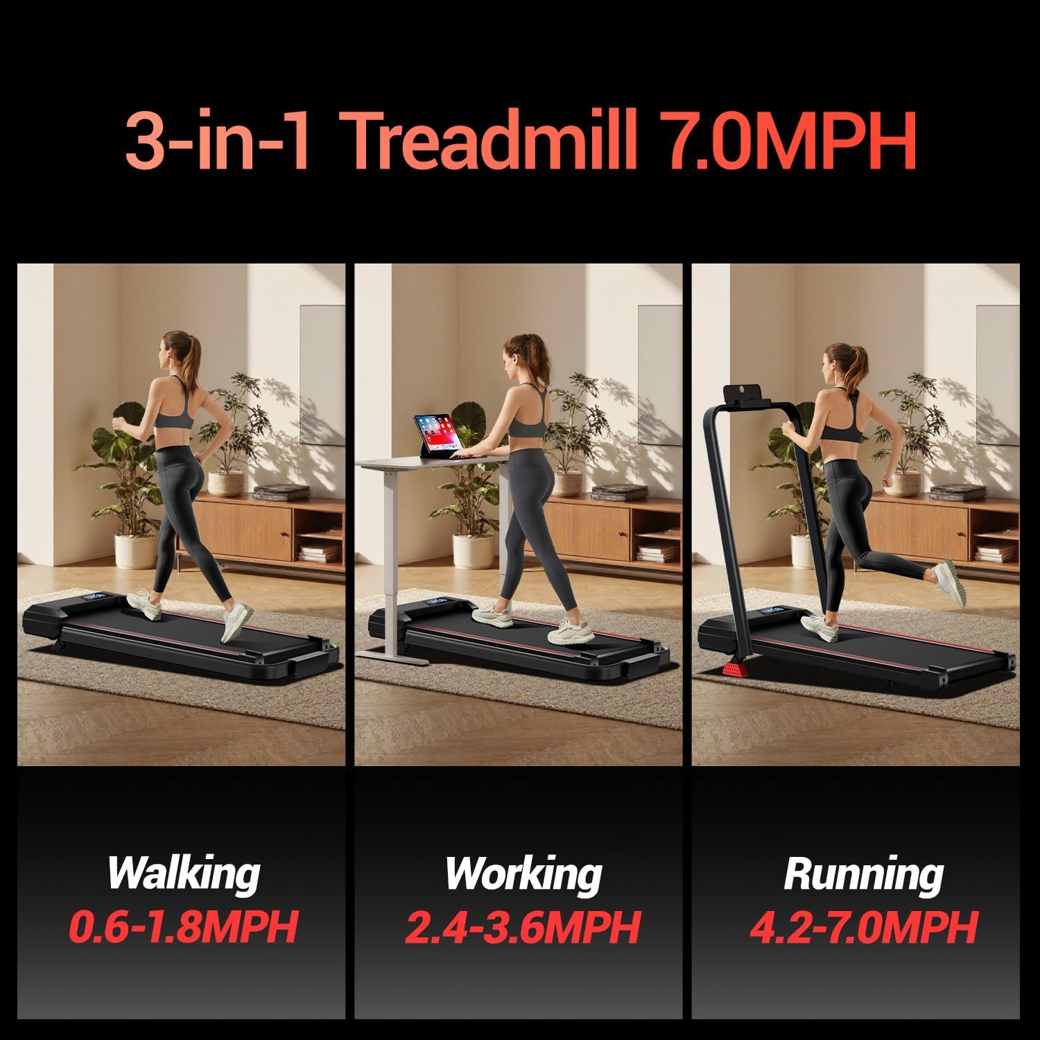 17% Incline Walking Pad Treadmills for Home and Office, 3-in-1 Folding Treadmill, Portable Under Desk Treadmill with 2.5 HP Quiet Brushless, 300 LBS Capacity