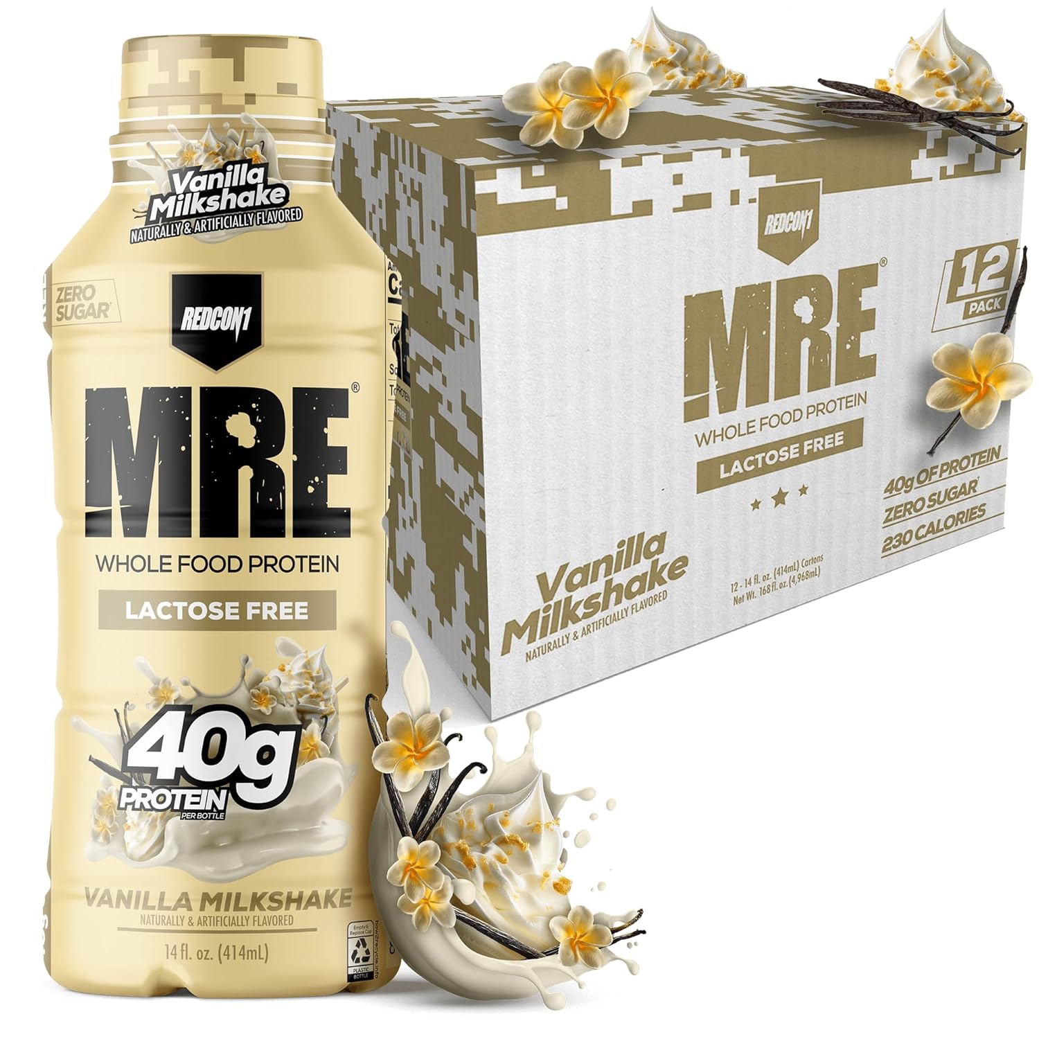 REDCON1 MRE Ready to Drink Protein Shake, Vanilla Milkshake - Lactose + Whey Free RTD 40gr Protein Made with Real Whole Food Protein Blends - Keto-Friendly, Easy to Digest Nutritional Shake (12 Pack)