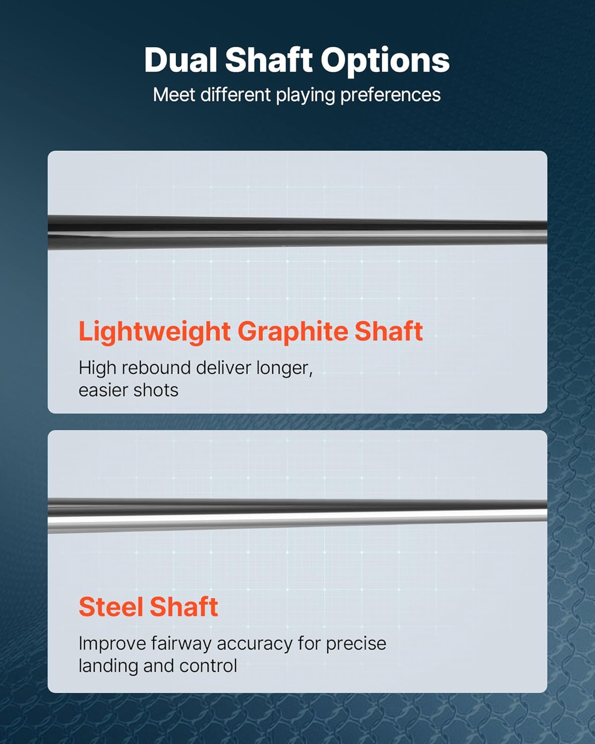 - Graphite & Steel Shafts: This golf club set includes graphite shafts that feature lightweight graphite shafts for higher swing speed and forgiveness, while steel shafts improve precision and control, supporting every aspect of your game