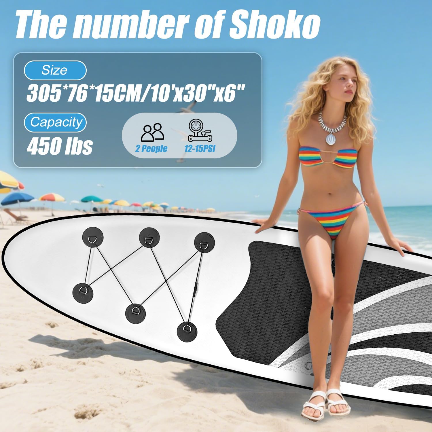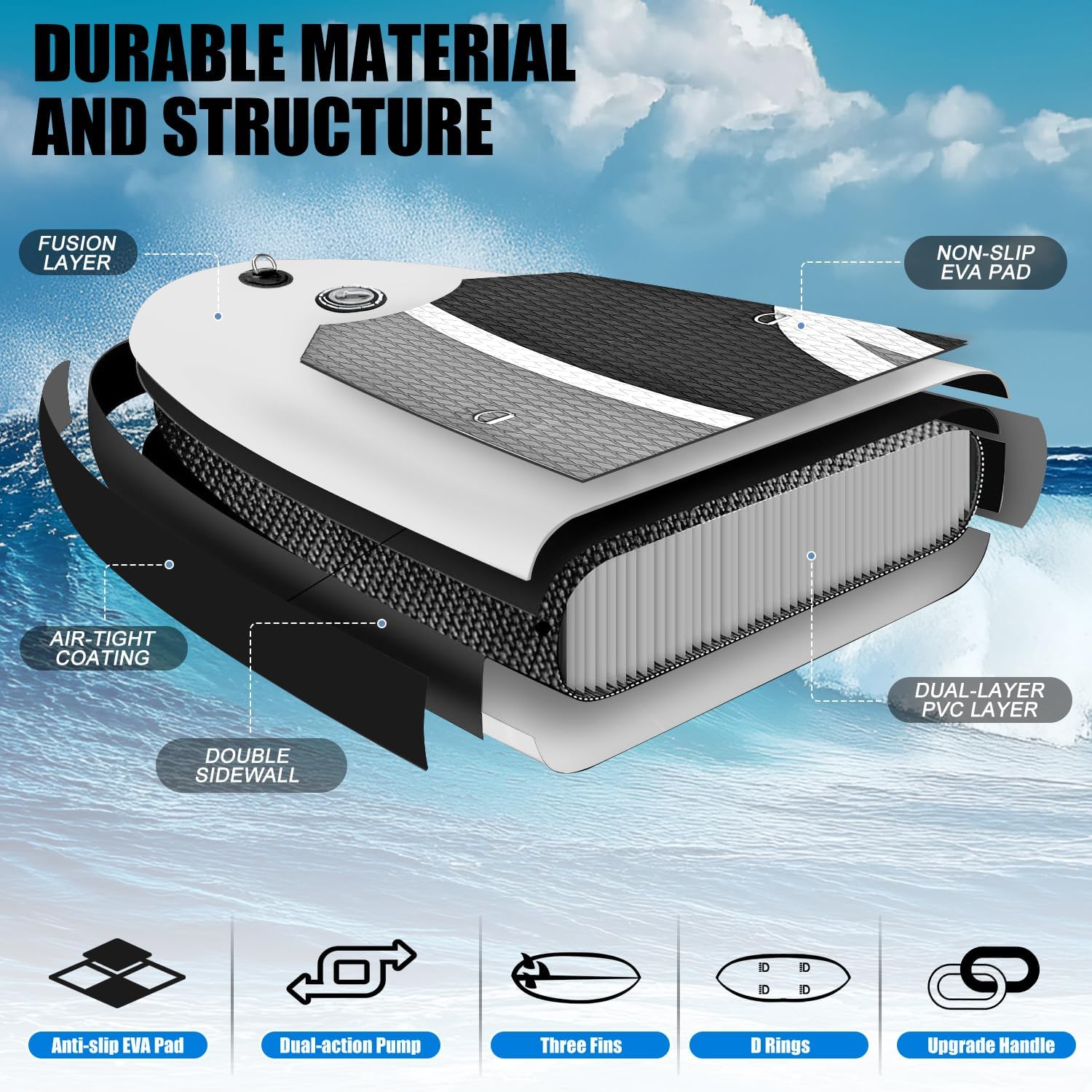 Inflatable Stand Up Paddle Board 10‘x30‘‘- Ultra-Light SUP with Backpack, Pump, Paddle, Coil Leash, 3 Fins, Repair Kit, Stable Design, Non-Slip EVA Deck for Adults & Youth