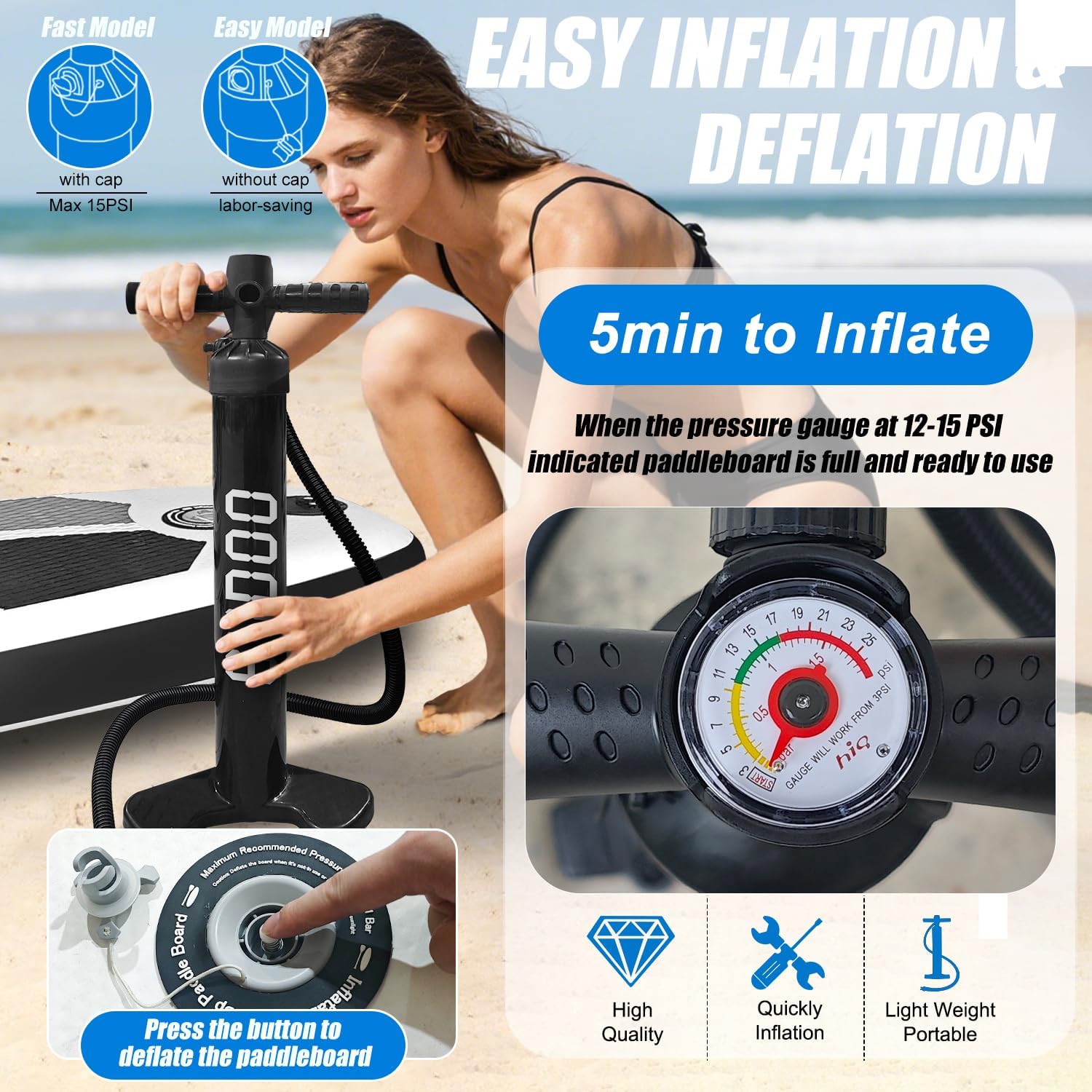 - Complete Kit: Includes SUP, kayak seat, adjustable paddle, pump, coil leash, repair kit, and backpack. Quick 10-minute inflation/deflation with leak-proof Boston valve.