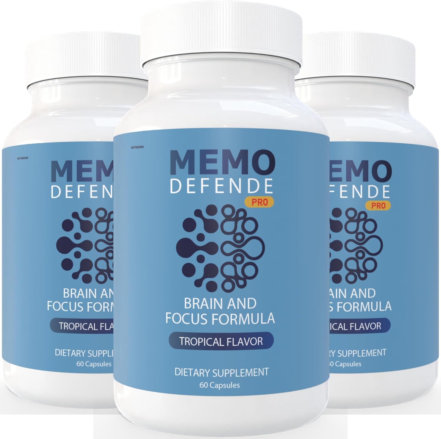 Memo Defende Pro Brain and Focus Formula, Tropical Flavor, 60 Capsules, Dietary Supplement with Vitamins and Minerals (3)