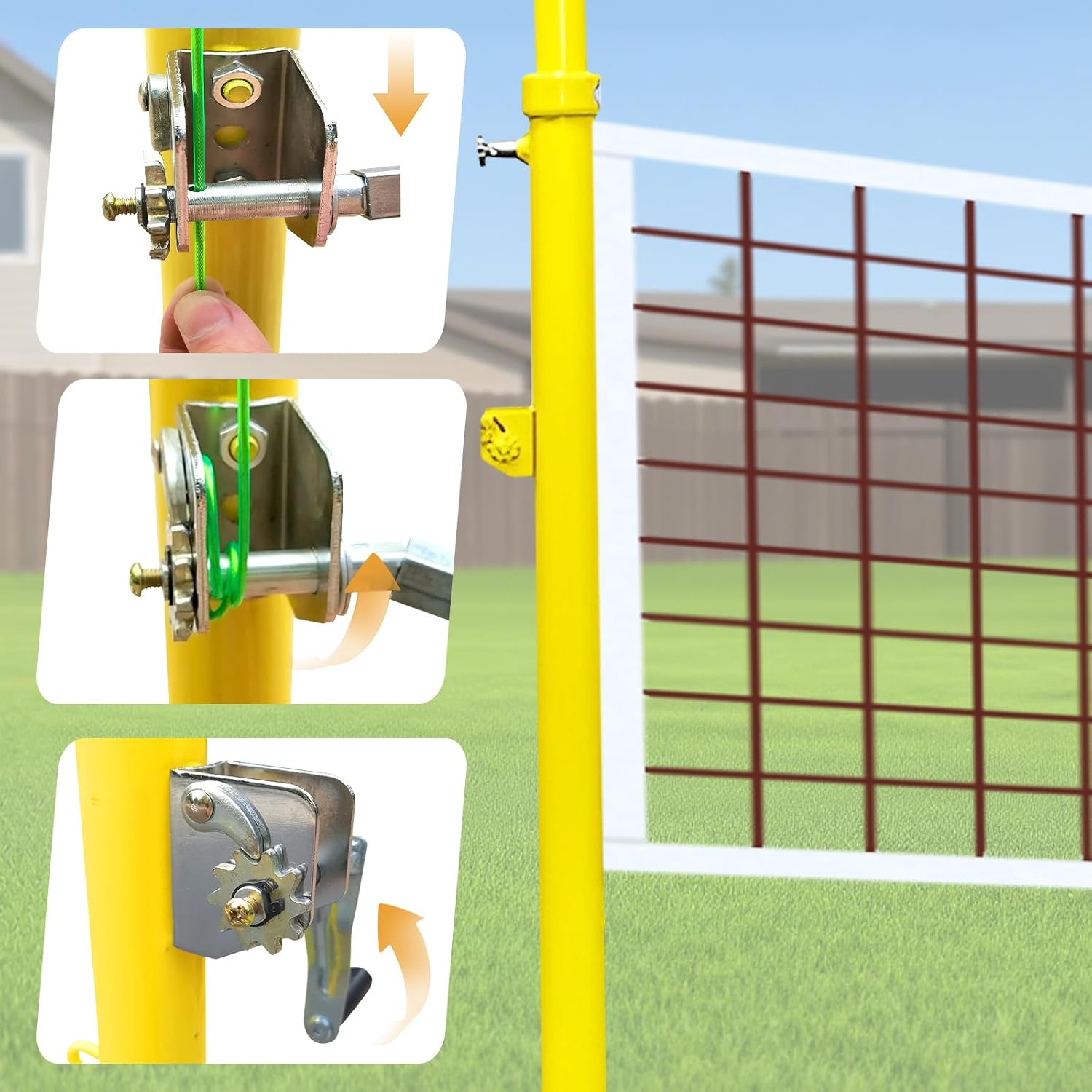 - 【Easy Set up Poles System】The badminton net frame can be tightened with a mechanical pulley to tighten the net and fix the position of the net.It has 6 levels of height adjustment.Only adjust the height and replace different nets to hold different games.
