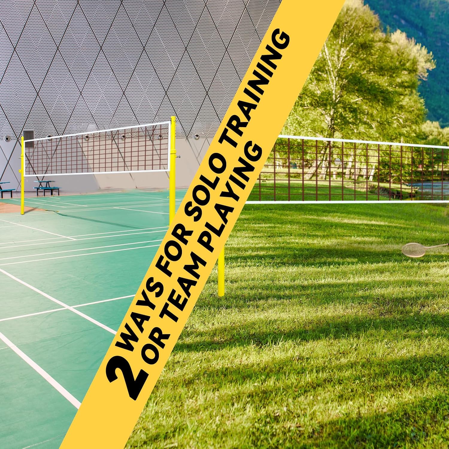 - 【Volleyball Poles with Net】Our volleyball poles come with 1 volleyball net and 1 badminton net.The volleyball poles can be used as a combination of volleyball and badminton. You can use it in outdoor, backyard indoor sports