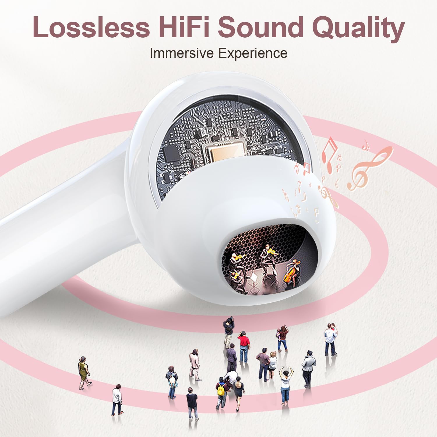 - HD Stereo + Crystal-Clear Mic: Custom 14.5mm titanium drivers (50% larger than standard) deliver sparkling highs and punchy bass, revealing musical details most wireless earbuds lose. Advanced audio codec support ensures minimal signal compression for studio-quality sound and exceptional call clarity.