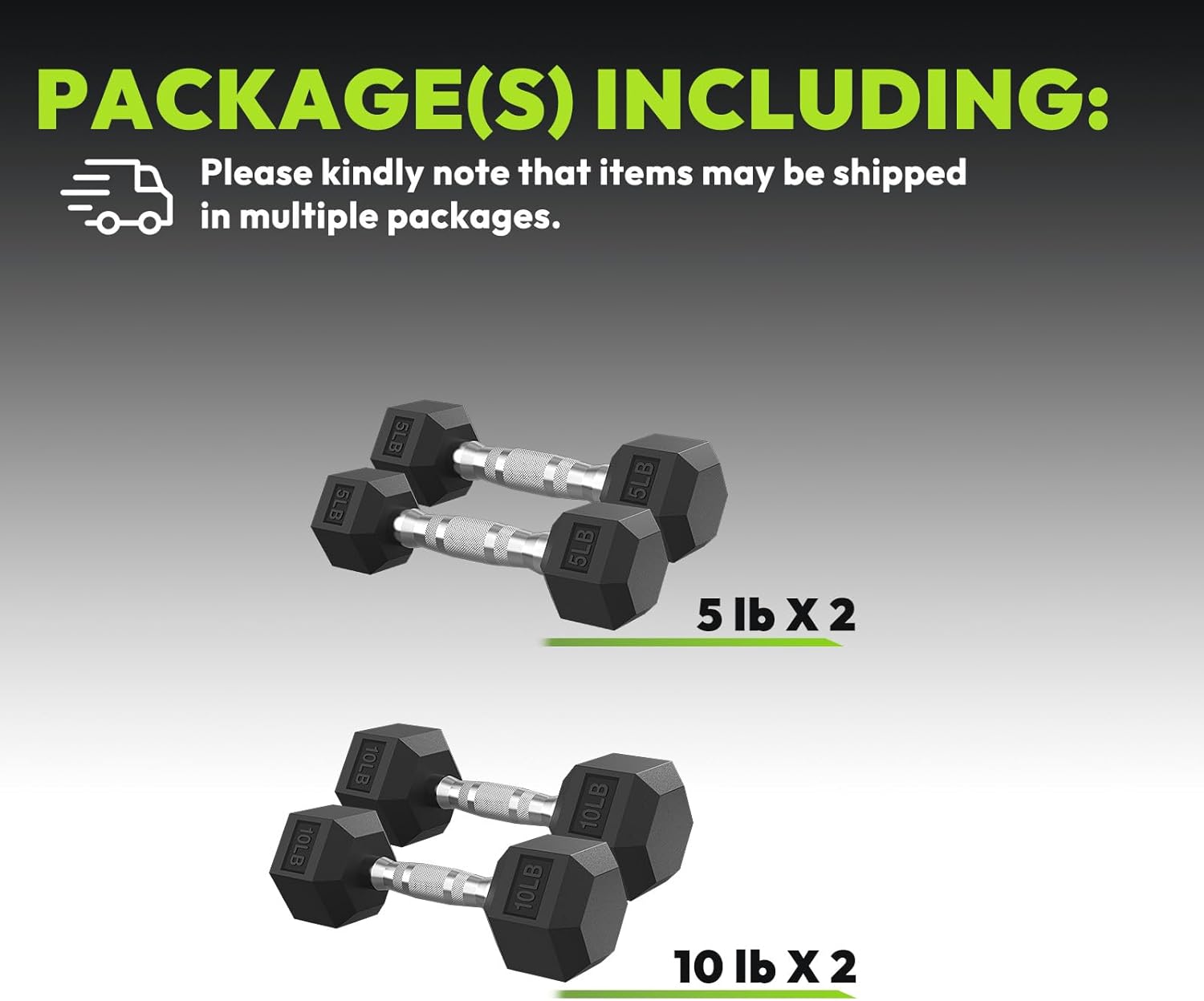 - A pair of (5 lb, 10 lb) hex dumbbell weight for workout and muscle training.